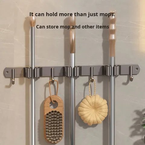 Design moderno 304 Stainless Steel Mop Clip com Integrated Broom Storage Rack Gancho Factory Direct Supply para uso no banheiro